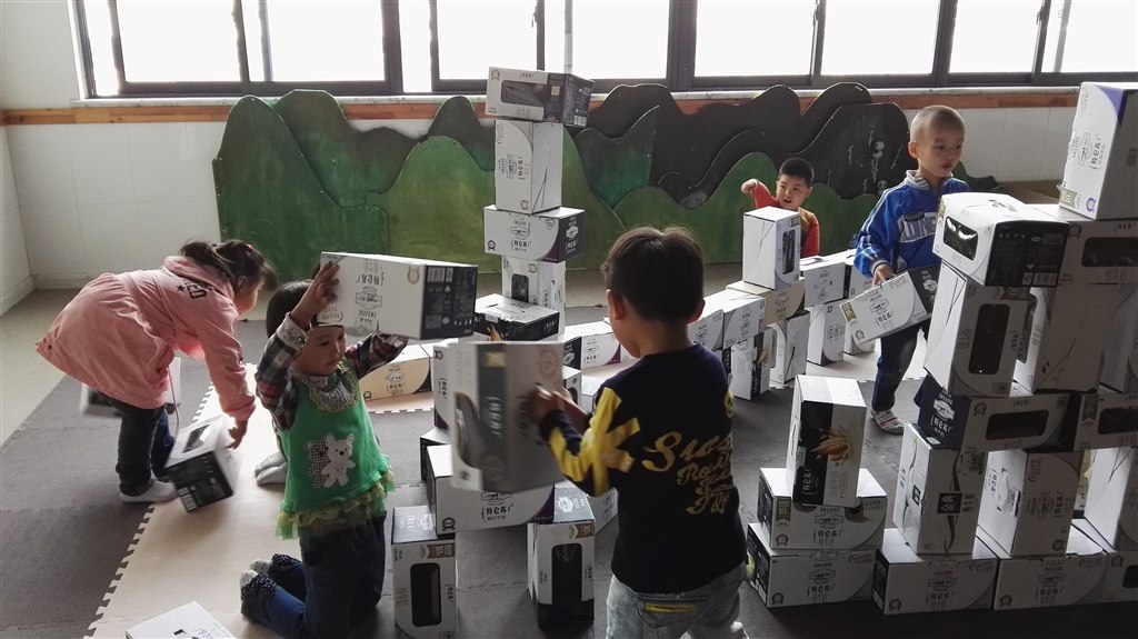 在《秋天的画报》主题开展中,我们和孩子一起先确定了游戏主题《农家乐》,并进行了农家乐的规划,房子、池塘、亭子、果园、停车场等建构内容在孩子们的脑海里应运而生。建构开始了,孩子们根据自己需要自由选择合适的材料进行合作建构,特仑苏牛奶盒垒高成立一幢幢房子;一次性纸杯排列、拼接成围墙;木质积木连接、组合成的小桥、亭子;雪花片拼插出的果树;超轻黏土做成的各种果子;孩子们用自己灵巧的小手建构出了他们心目中的农家乐,他们在游戏中表现出来的全神贯注、超凡的想象和无法估量的创造性令我们老师也为之惊叹。