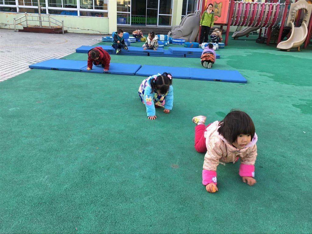 本次生态运动游戏不仅可以发展幼儿的爬行能力,提高四肢的协调性,而且在特定的游戏情境和材料设计中,还可以让幼儿能大胆、自主参与游戏,体验到共同游戏的快乐。