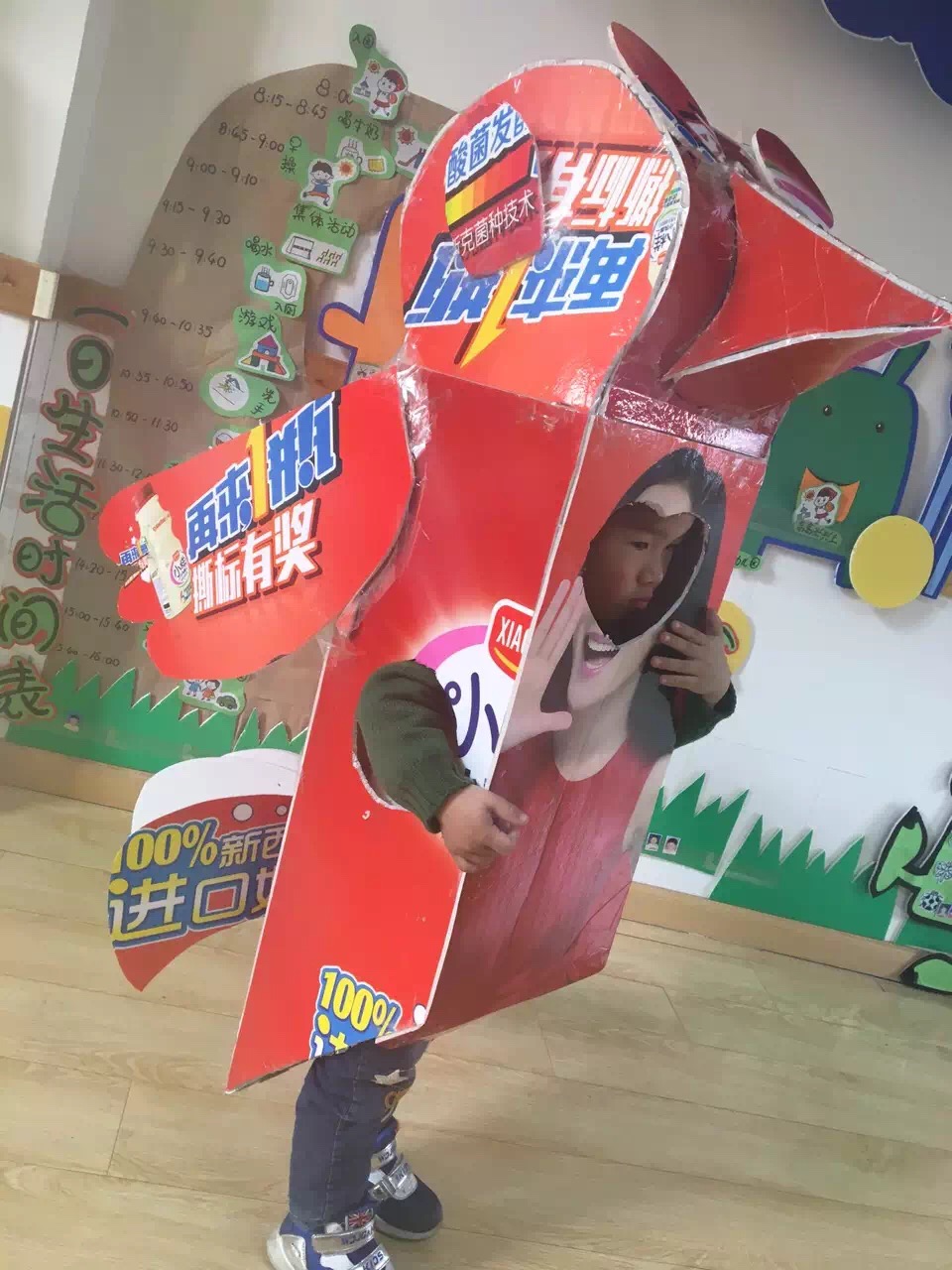 表演游戏是幼儿根据文艺作品中的情节、内容和角色,通过语言、表情和动作进行表现的一种游戏,是幼儿喜爱的游戏之一。为了切实推动幼儿园表演游戏的开展,我园发动小班幼儿家长的力量,请家长选择废旧材料为孩子们设计、制作游戏角色服饰,家长们可谓“八仙过海——各显神通”,运用纸盒、卡纸、橡筋、针线等材料,以剪、画、贴、缝等多种形式制作出一件件形态各异、缤纷多彩且独特的服饰,有可爱的兔子服饰、有凶猛的大老虎服饰、有灵活的孙猴服饰、有大气的大鸟服饰……这些服饰都有助于孩子们表演各个有趣的童话故事。每套服饰色彩艳丽、构思巧妙、造型新颖、安全卫生,美观耐用,充分展现了家长们的心灵手巧。家长的智慧真的超乎老师们的意料,忍不住赞一句:太有才啦!