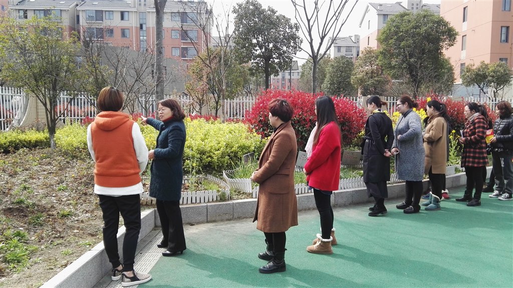 上午,采菱园的老师们首先对小花园进行了仔细的考察,相互交流整个场地的规划,大家都认为所创设的体育环境应该把有利于幼儿参与和发展放首位,使体育环境真正成为孩子喜欢的“乐园”,大家一起思考:可以开设哪些活动区?木桩设在哪个具体位置比较合适?种植园地挪到哪里合适?在规划活动场地时,我们要考虑场地的布局,还要充分考虑运动中的安全因素。比如钻爬区和平衡区对运动空间的要求都不高,且两种活动有较大的关联,因此可将这两个区域设于相邻的位置。采菱园的老师们各抒己见,大家聚在一起交流自己的想法,相信采菱园新规划的户外“新空间”一定能促进幼儿身体正常发育和机能的协调发展,提高孩子在户外体育活动中的自主性和积极性。
