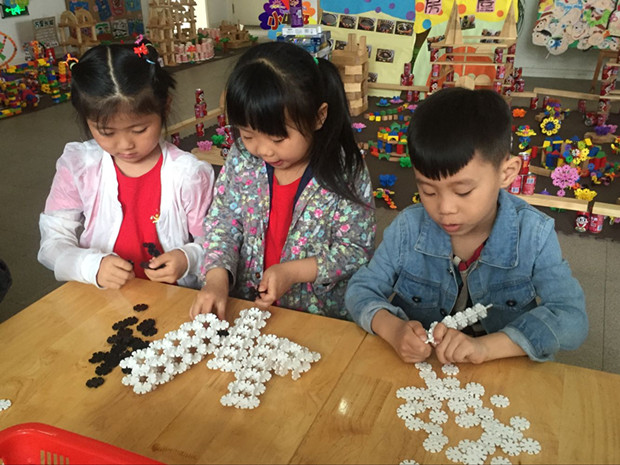 雪花片是一种发挥想象力的拼塑玩具,它形似雪花,有五颜六色的软塑料制成,周围开有八条槽,可以相互对接、拼插等。雪花片可塑性强、创意空间大,因此,深受孩子们的喜爱。6月1日上午,采菱园大三班邀请家长来园观看孩子主题性雪花片建构活动。