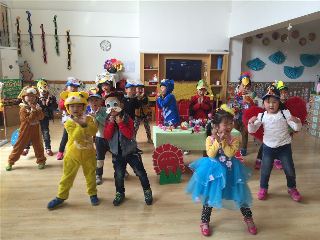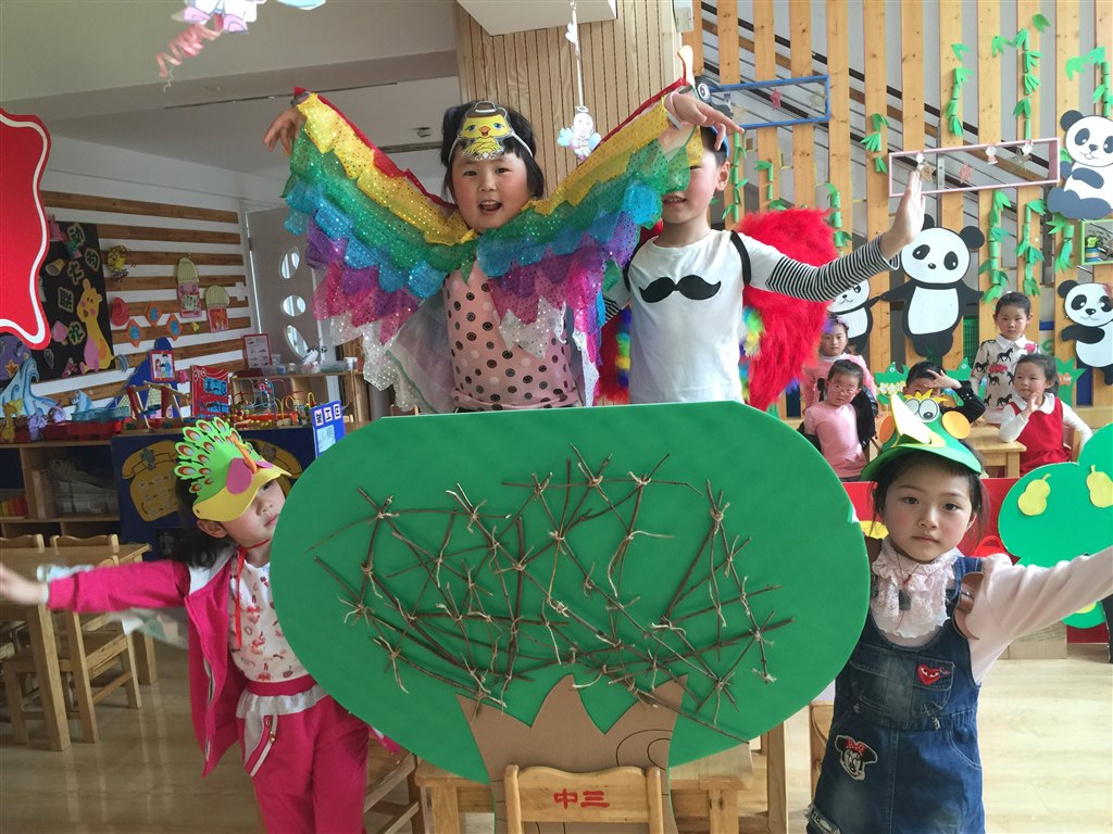 1.师:今天我们要给爸爸妈妈来表演这个故事?等一下你可以选择自己喜欢的角色来打扮自己,要把自己打扮的像一点!比如:小鸟身上有什么呢?小猴有什么?