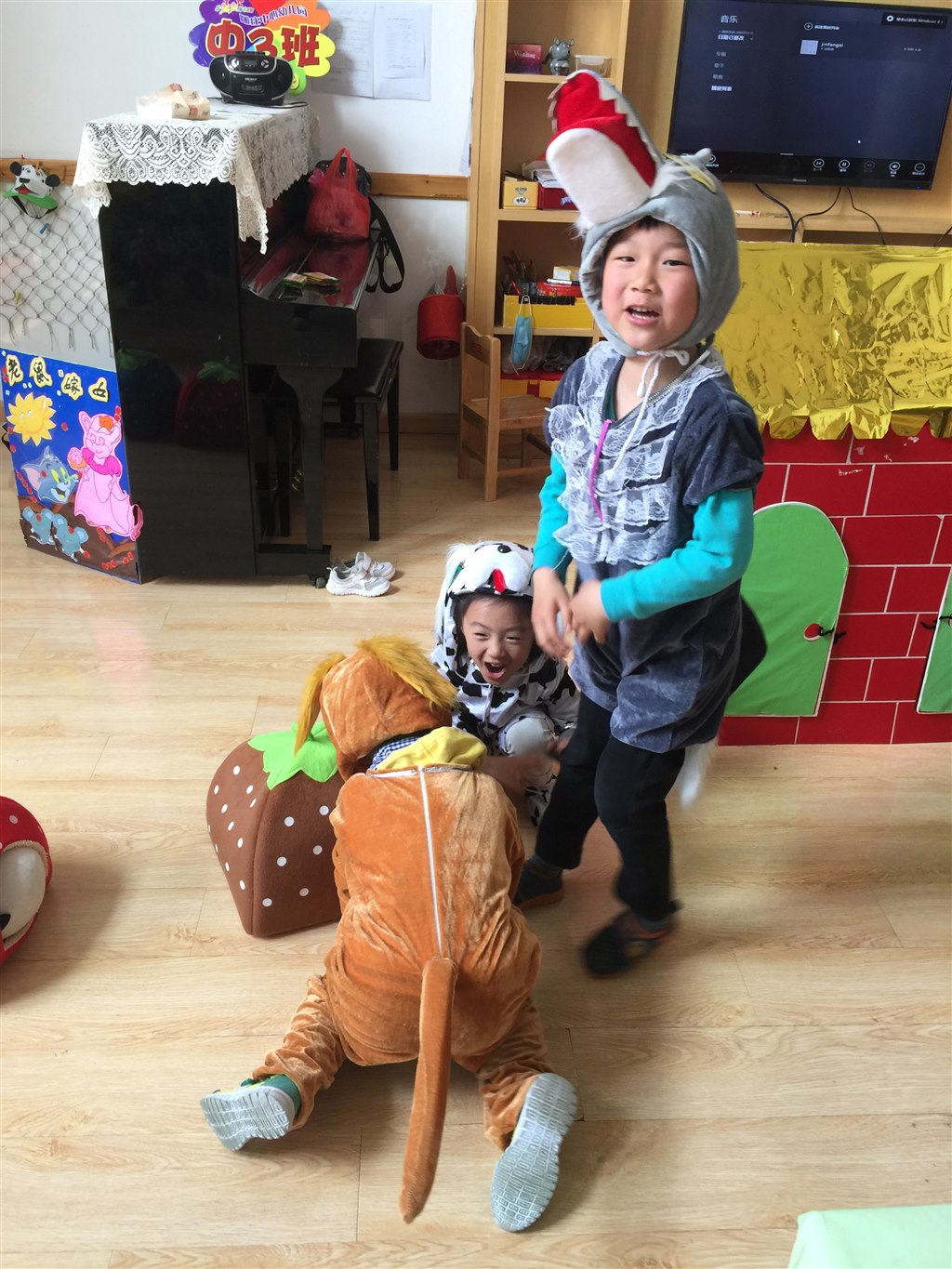 3.在我们原来的故事中是没有大灰狼这个角色的,小朋友为了让故事更加有趣就创编了这一角色,那么大灰狼最后的结局大家可以自己想象创编表演出来,可以是大灰狼被小动物们打跑了,也可以是大灰狼被小动物们打死了。我们是做游戏,能不能真的打扮演大灰狼的小朋友呀?