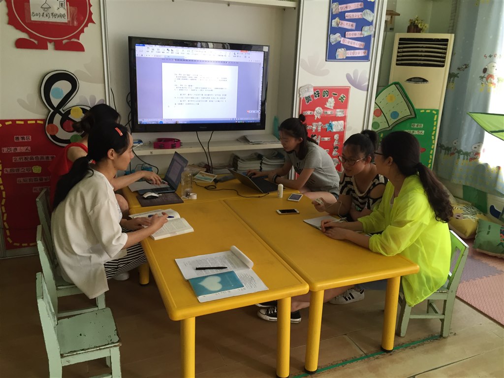 教师们还根据自己班级幼儿晨间运动的情况进行了研讨,设计出两个符合幼儿年龄特点的晨间游戏活动。老师们认为孩子对最近热门的综艺活动“奔跑吧兄弟”很感兴趣,于是老师们抓住这个契机设计了《撕名牌》的游戏活动,计划借助小山坡和绿色平地进行游戏活动,活动分为三个部分:找名牌、小组对抗撕名牌、终极对决,训练幼儿在游戏中躲闪的能力。结合夏季的季节特点我们设计了《玩水枪》的游戏活动,幼儿通过取水、装水枪、对抗打水仗的环节来体验夏季玩水的乐趣。