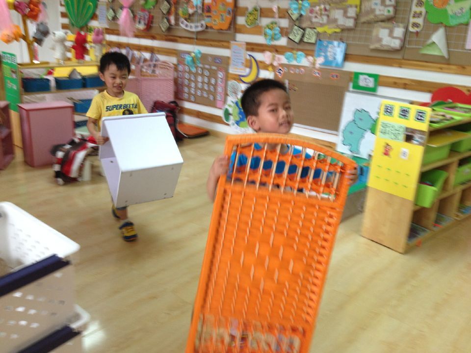 随着课程游戏化热潮的推进,自主开放的游戏一直是幼儿热衷的一项活动,幼儿在游戏中能自主、自由地参与。在这种理念的引领下采菱园开展角色游戏进行新的尝试,在游戏场地上留一片空白区域,让孩子们自主商量玩的游戏主题,打破了传统角色游戏环境由老师创设好,幼儿再进行游戏的方式。游戏中孩子们会商量用哪些材料进行布置,老师会在游戏前根据孩子的年龄特点会提供适宜的材料,游戏场地如何布置,都是孩子们共同商量。面对体量大的桌子,孩子们会一起合作搬,在游戏中合作意识得到了很大的提高。