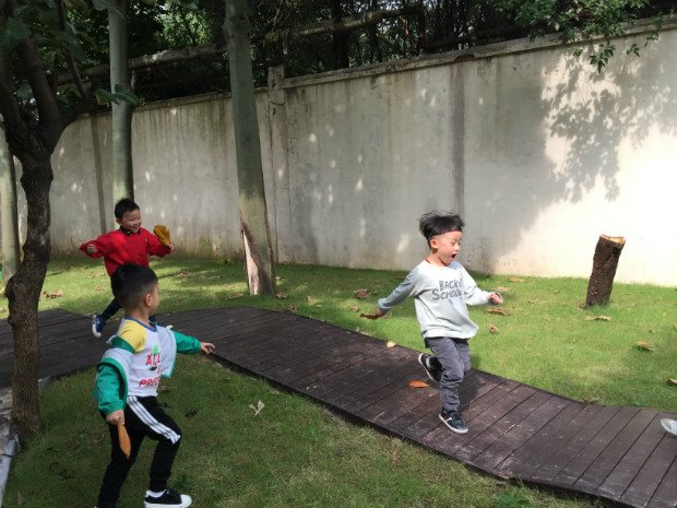 秋天来了,很多小树叶都变黄了,它们离开大树妈妈投入了土地公公的怀抱,小朋友们在秋的金黄里捡起一片片树叶,带着小树叶四处奔跑,让它高高飞起,再看一眼自己的大树妈妈,最后快乐的离去,我们根据这一情况生成了一节生态运动游戏——小树叶找妈妈。