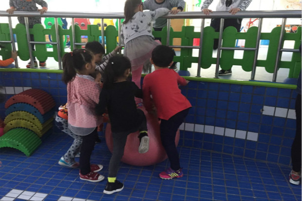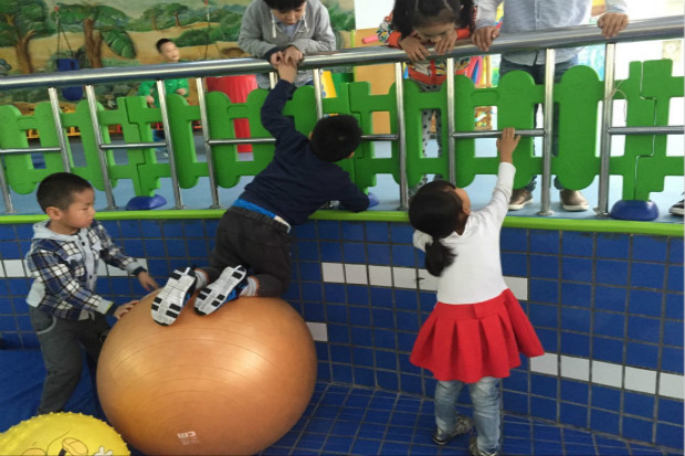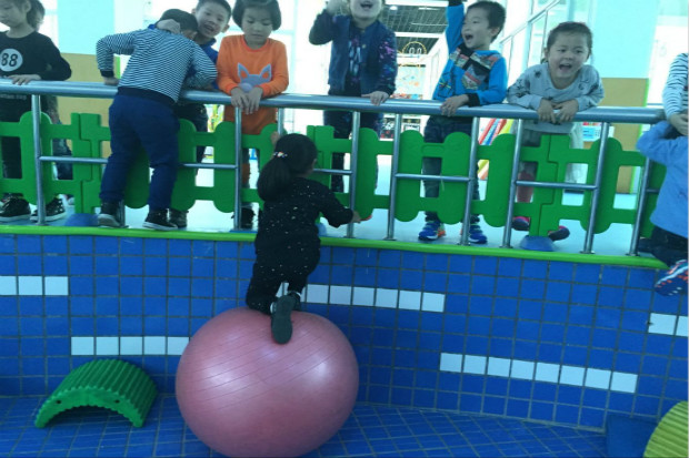即便是下雨天,我们雕幼的生态运动游戏的脚步仍然不会停止。在下雨天,我们将活动场地搬至幼儿熟悉的游泳池,改变以往游泳池的玩法,鼓励幼儿运动彩虹桥、垫子、球等不同的材料,勇敢攀越高高的游泳池。幼儿积极参与,开动脑筋,与同伴一起合作,互帮互助攀越高墙。