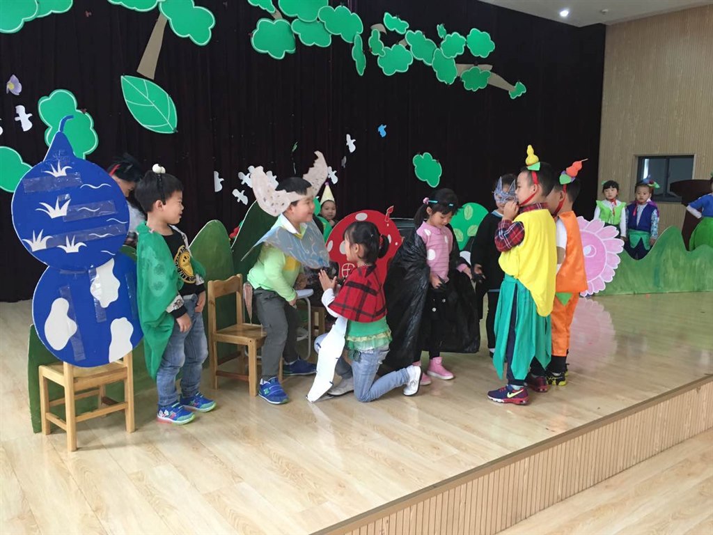 本次民俗节活动从编剧本到导演、排练,以及制作道具,都以孩子自主活动为主,教师作为协助者帮助幼儿完成游戏。台上的孩子们卖力地演,台下的“小观众们”也是认真地看,孩子们的精彩表演赢得小观众们和老师们的阵阵掌声。