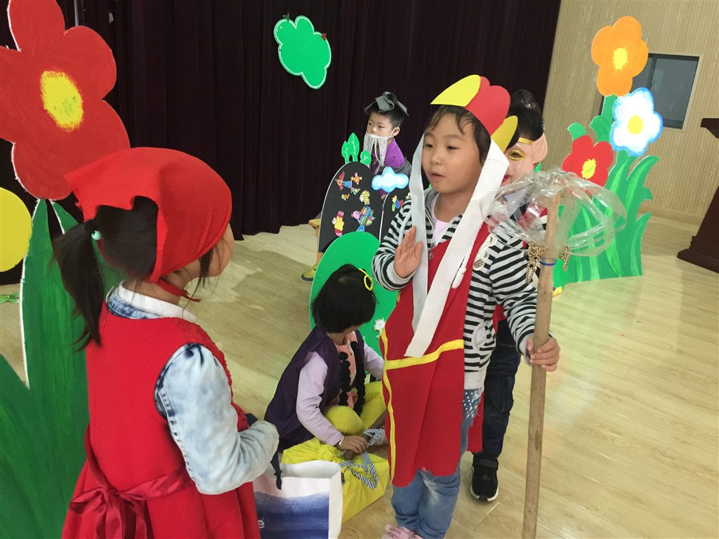 10月28日上午,采菱幼儿园举办了一场别开生面的民俗节活动,此次民俗节活动改变了以往的传统形式,不再是简单的认识粗粮、说说常州话、了解常州民俗风情等,而是把民俗节和我们的课题——《利用生态环境资源开展幼儿表演游戏的实践研究》结合,从幼儿熟悉的民间故事入手,自由选择角色,自主装扮、快乐表演、展示自我!