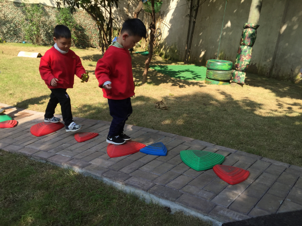 游戏开始了,小朋友们积极热情地帮助赵老师捡回了丢失在树林里的糖果。而且聪明的宝宝们还根据糖果的颜色把它们送到了相应的地方。当然,最吸引小朋友们的还是给动物朋友们送糖果了。在我们的探趣园里住着小熊、小兔、小猫、小狗,树林里还有许多小鸟。孩子们争先恐后的要给它们去送糖果,可是去它们家的道路可是极具挑战的。小熊家的门口有一条大大的水沟,小兔家住在陡陡的山坡上,小猫的家门口有一条鱼型隧道,小狗的家门口有长长的独木桥。我们的小朋友可不怕这些,他们拿起糖果,愉快地接受了挑战。