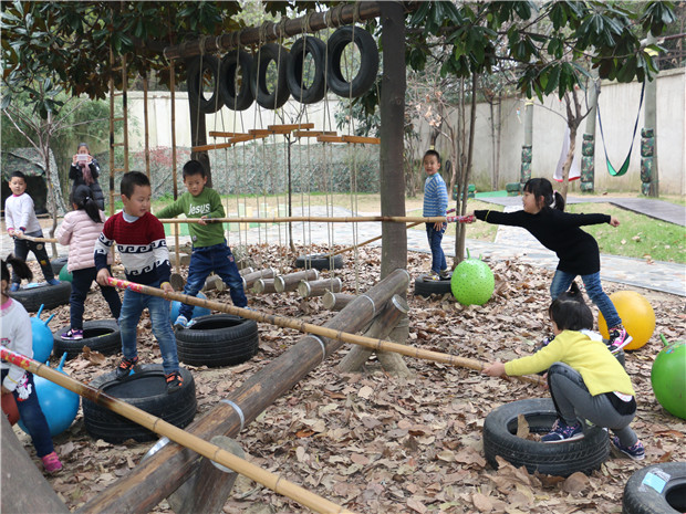 今天上午,在小花园拓展区,大四班小朋友开展了一次激烈的《皇室战争》,别听名字特别的高大上,其实就是小朋友开展了一个抗战类的游戏。 游戏开始,小朋友们自由选择手环成立黄队和蓝队,然后骑着战马去树桩区寻找相应颜色的手环一个。小战士们寻找到一个手环,骑着自己的战马到战场上,寻找相应颜色的轮胎,敌我双方站上轮胎,手持竹竿,进行对峙,想办法将对方从轮胎上击落则算赢,输了的战士将自己的手环送给赢的战士,然后再去寻找手环继续游戏,直到战争结束。手环最多的队伍就是最强战队,手环最多的勇士则为最强勇士,最后我们还进行了两队最强勇士之战,争夺超级战士的名号。 游戏中孩子们非常投入,想方设法想让地方掉到地面上,同时,我们的孩子也是非常遵守游戏规则的,掉落的战士能主动将自己的手环给赢的一方,没有耍赖的孩子,这样的游戏一方面发展了孩子的身体灵活性和平衡能力,也激发了幼儿一定的集体荣誉和个人荣誉感。
