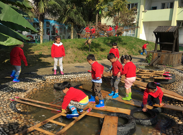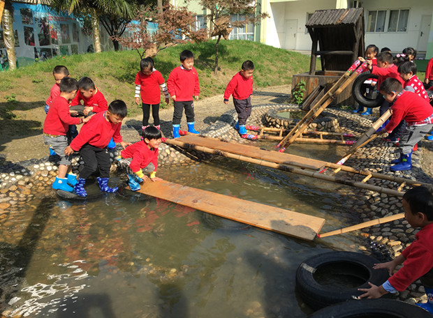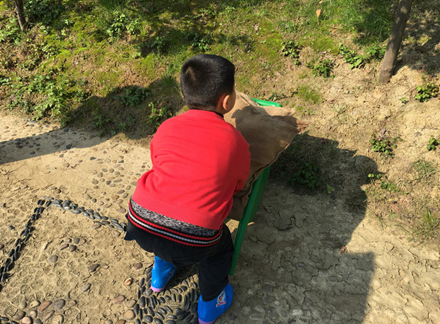 转眼间,几座小桥搭好了,孩子们推着小车通过自己构建的小桥,来到山坡上寻找粮食运回粮仓,达到了忘我的境界!