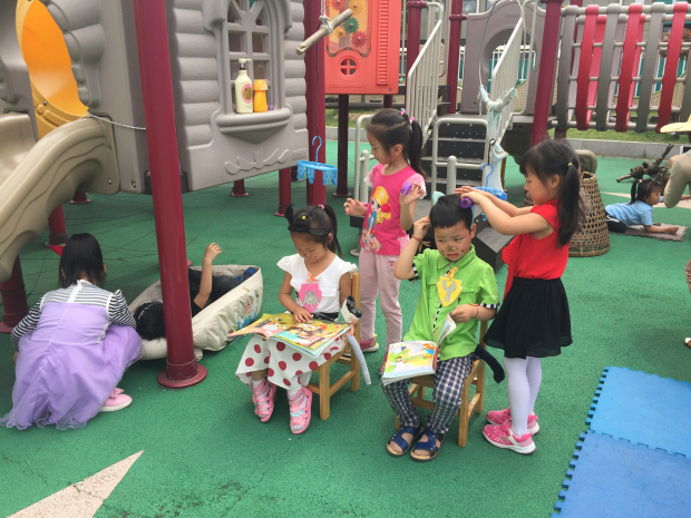 逼真的游戏场景、接近幼儿生活的实物使幼儿有了身临其境的感觉,孩子们能够大胆独立地不受空间限制地进行表演活动,有效减少了室内游戏互相干扰的现象,优化了幼儿的游戏空间,提供了更加灵活的游戏场所。