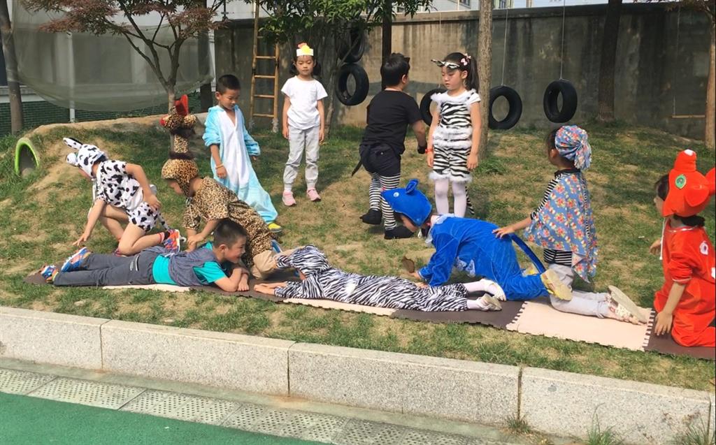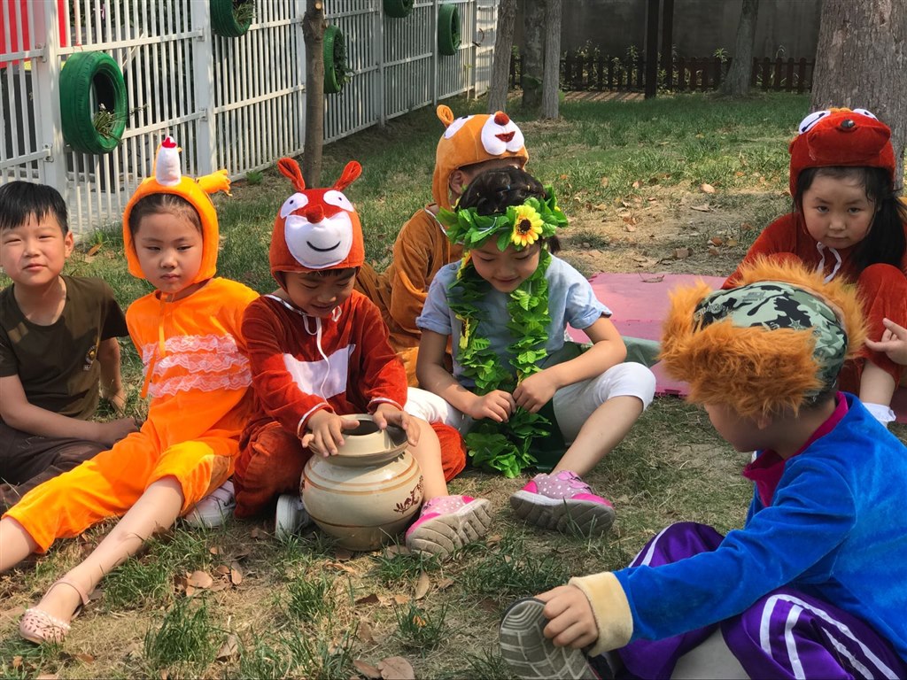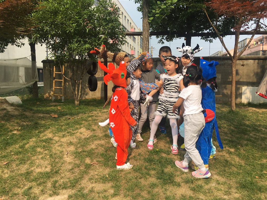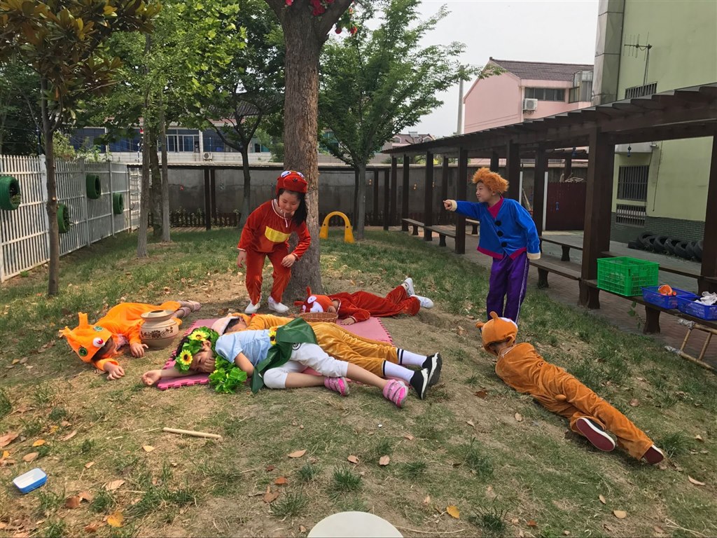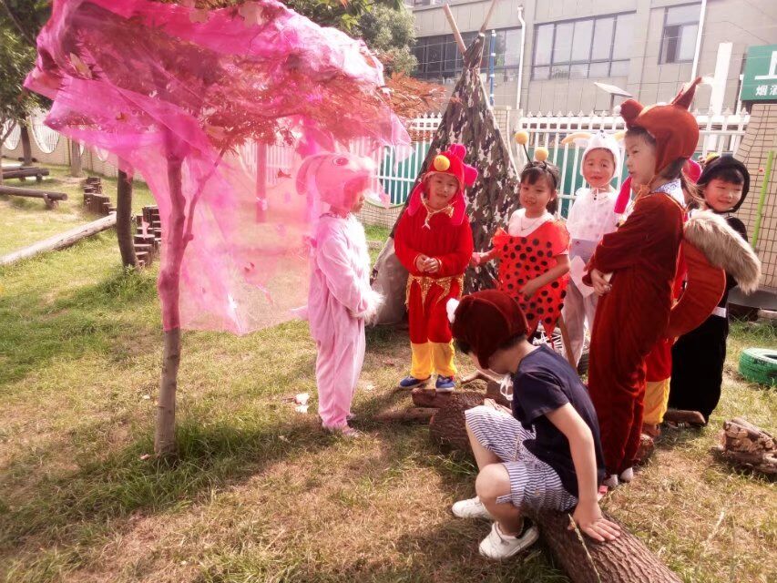 大一班根据动画片《猫和老鼠》进行了改编演绎,将滑稽的猫鼠生活展现了出来:在轮胎洞里追逐躲藏,演绎着猫和老鼠的快乐;大二班根据故事《野猫的城市》进行表演,利用小树林和滑梯展示森林与城市的差别,演绎着穿梭于森林与城市之间的诙谐故事;大三班的《赏花大会》让孩子在大树下,“喝喝酒”、“吟吟诗”、“赏赏花”,感受了一番隐于山林的独特滋味;大四班根据故事《桃树下的小白兔》利用纱布和树,将桃树布置的格外形象,片片桃花瓣给孩子们带去了希望与快乐……