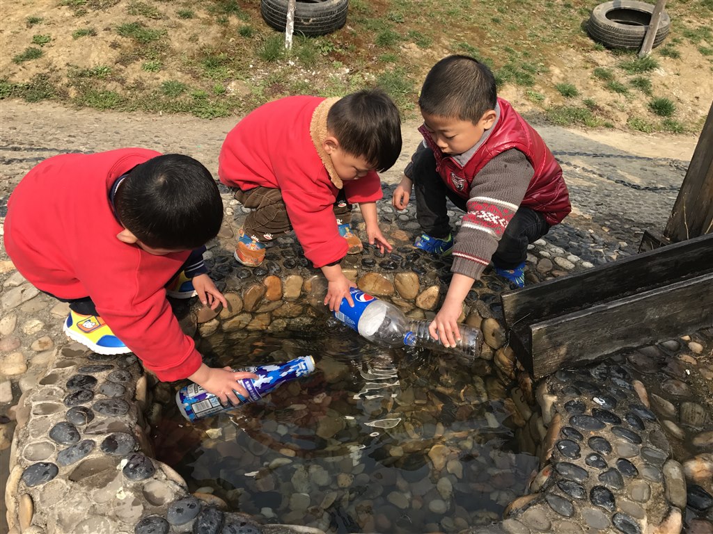 4月19号上午,我园迎来了市专家领导组以及各姐妹园同行的大规模参观,本次活动中我班活动场地在小山坡周围区域, 我们在绿色软质地上提供了传统的小型器械如小精灵、平衡板等,孩子们时而钻、时而跳、时而跑。我们还利用树枝、废旧的管子在小池塘边搭设了管道,让幼儿拿瓶子装水倒进管道看水的流向,参观的老师也被这个吸引住了,纷纷驻足拍照观看。有的老师还说回去也要建议创设同样的游戏,有的老师也拿着瓶子和幼儿玩起来。滑滑梯旁的白沙也是孩子们最爱的区域之一,利用各种模具把沙子塑造各种造型,在攀爬墙的洞里钻来钻去,孩子们都玩的不亦乐乎。