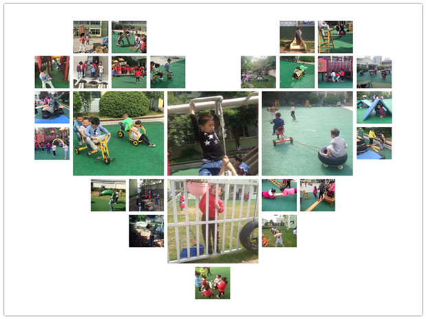《上山容易下山难》----在操场上,用轮胎支架大长坂进行向下冲的游戏,看似很简单,每次我总在想,为什么孩子们这么慢跑下去,投入林爸爸的怀抱,幼儿可以无形中控制自己跑的速度和动作,向下冲的是心理缓冲和腿部控制力这里有着一定的刺激和挑战度,就如同真实的小山坡上跟着轮胎上山下山时,孩子们的心理考验还是蛮大的,下山的速度和手部控物的能力都有体现,上山时的腿部攀登和臂力推动都是不可忽视的力量呈现;小山坡上的黄色通道也是无意中投放在那里的,上山时可以进行助跑,一口气将跑道跑完,下山的速度很快,但是下山时孩子自我控制和保护意识自己是有的,脚趾和腿部的控制力量因人而异,速度自控,安全第一,挑战第二,还真有在小山坡还真的有“上山容易下山难”的说法。