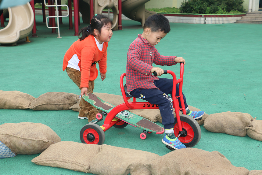 11月雕庄中心幼儿园里热闹非凡,为深入开展我园《幼儿生态运动游戏的实践研究》的课题,在2017.11.7和2017.11.8两天上午我们雕庄中心幼儿园全体教师在课题组长邵老师的组织和带领下齐聚户外对小、中、大各级部的车行生态运动游戏进行了现场观摩。