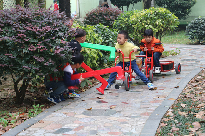 在游戏中,孩子们根据自己的兴趣爱好自主选择角色,自由结伴,如两个一起扮演“朵拉”送快递;在帮助小动物安家的过程中,孩子们认真的考察场地,并以跟小动物打招呼来熟悉其它动物“家”。在孩子扮演“捣蛋鬼”角色中,他他们根据自己需要自主选择素材,并个同伴合作设计路障。整个游戏看似很乱,但细细品味就会发现,孩子们的“乱”都是在孩子们制定规则之中,而这种规则来源于幼儿对已有经验(《爱探险的朵拉》)。
