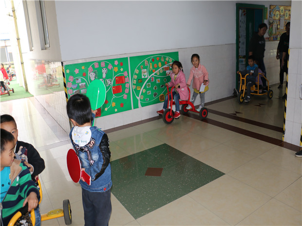 11月9日我们对全园老师开放了这一游戏,幼儿们在停车场两两接伴,协商后拿好地图选择不同路线出发。骑车的幼儿听从后面拿地图同伴指挥骑行,到达宝藏地点寻宝。如到达地点没有宝藏,返回停车场重新拿地图出发。找到3个宝藏队伍胜利。活动一开始以拿地图寻宝引起幼儿活动兴趣,通过在小花园、小山坡、足球场等各个地方寻找宝藏不仅发展了幼儿的动作协调性平衡性,还培养了幼儿勇敢、不怕困难的品质和主动乐观合作的态度。在骑行的路上虽然没有明显的交通标记,但孩子们仍能严格遵守规则,因为有竞赛的性质在里面,孩子能迅速进入角色中,主动参与,始终处于我想玩和我要玩的状态中。