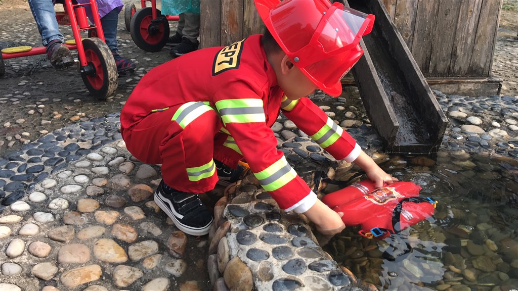在游戏中孩子们利用消防车,骑到取水点,路过崎岖的小路给我们小花园灭火,遇到够不着的地方也能想办法利用云梯、凳子等物品来帮助自己完成任务,孩子们的笑脸就是游戏最大的收获。