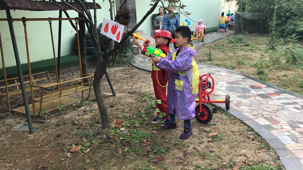 今天我们班组织了游戏是“我是消防员”,根据我们班幼儿的已有经验和车行区游戏的推进,我们班之前玩了一次体验类游戏“各种特殊功能的车”:比如消防车、救护车、警车等等,孩子们在预设游戏时,自己对自己喜欢的游戏做了一定的准备,我们班逸晗想玩消防车的游戏,于是她自己带来了支撑她游戏时所需要的材料——一把小水枪,因为她手里有了材料,所以趣味性相比于其他孩子来说更强一些,孩子们都对她消防员的游戏产生了浓厚的兴趣于是有一个孩子的兴趣点变成了全班大部分孩子的兴趣点,我们准备正式开展我是消防员的游戏。