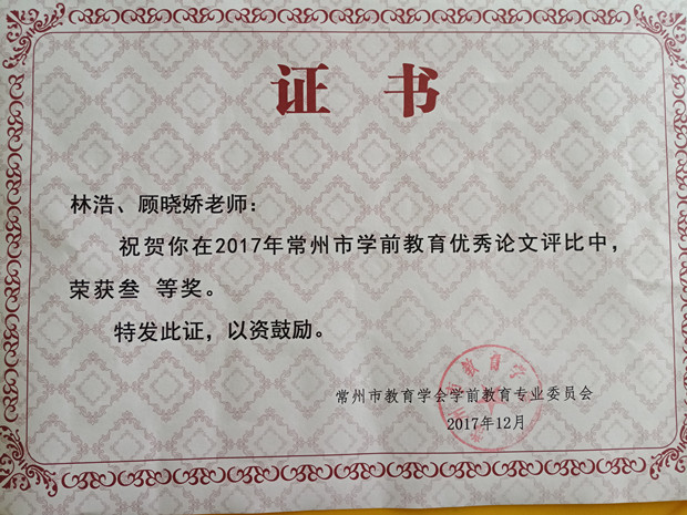 获奖论文:《晨间户外运动游戏中区域混班的现状与应对策略》(林浩 顾晓娇)