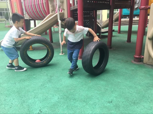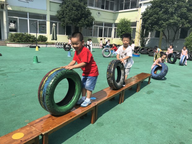 轮胎是生活中常见的物品,也是幼儿园的常见的运动器械。在平时的运动游戏中,我发现我班许多幼儿滚轮胎的能力较弱,没滚多远轮胎就会倒下,手脚不协调,基于这一现象,我借助情境,赋予幼儿角色,生成了生态运动游戏《快乐的小司机》。