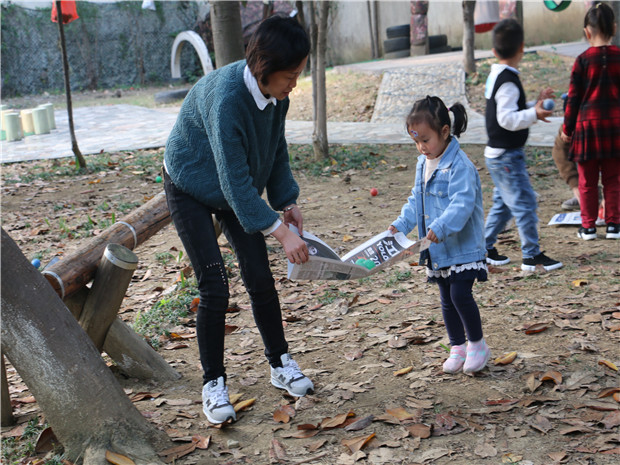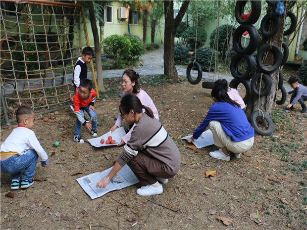 一次偶然的户外活动中,我们采用了报纸这个常规的游戏材料,请孩子们自己思考游戏的方法,在这过程中,生成了合作游戏,孩子们将自己的皮球放在报纸上进行运送,由于孩子之间的协调性不够,报纸的损坏程度比较严重,在交流中,孩子们发现可能是力气太大,也可能是皮球太重。可见利用报纸进行运送的游戏需要两个人之间的相互协调。根据这个游戏,我设计了亲子生态运动游戏《报纸运球》,请家长和孩子两个最亲密的人一起在寻球、取球、运球的过程中,相互合作,互相帮助,在自然自主的运动游戏中发展幼儿的身体协调性和控制力,在合作完成任务的过程中,增进亲子关系。