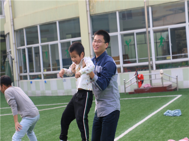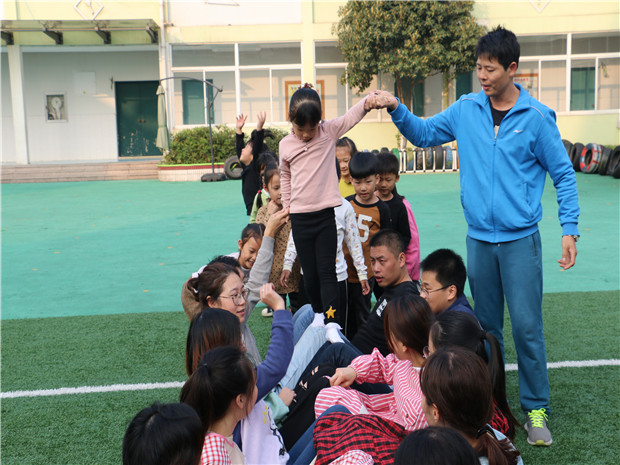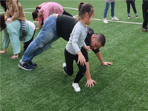 2018年10月24下午,大三班在中心场开展了亲子生态运动游戏《亲密接触》。本次游戏尝试从生态运动游戏的核心价值为出发点。在游戏中,不需要准备大量的游戏材料,而身体是没有经过任何加工的最好的天然材料,并且肢体接触是最有效的改善亲子关系方式。在游戏中,孩子们和“爸爸妈妈”进行富有创在性的身体互动游戏,他们基于自己的原有经验,进行有趣的游戏活动,如有的玩钻洞洞;有的玩走大脚;有的玩大风车……,在这过程中,幼儿在创造性游戏中不仅发挥了孩子的想象力和创造力,同样也让家长在游戏想象力和创造力得到发展。