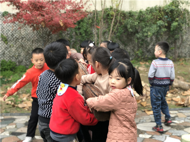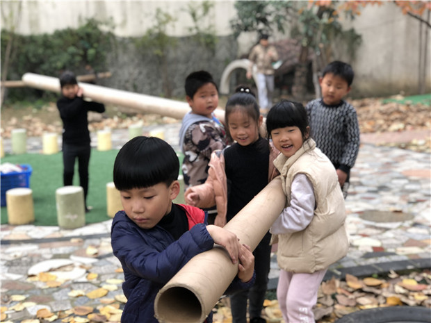 拓展园是我班孩子比较感兴趣的游戏场所,里面有很多树木和一些蜿蜒的小路。孩子们在里面开展了很多有趣的游戏。基于孩子们的兴趣,我们创设了“运木头”的游戏情境,让幼儿将拓展园的“木头”运送到宽阔的草地上,木头有长有短,有轻有重,幼儿可以自主选择运送的材料,在树林里面穿越前进。在前进过程中,长木头、重木头给孩子们很大的挑战,孩子们相互合作与配合,有的发口令,有的帮助同伴安全通过,在游戏中孩子们能力得到了提升,自我保护意识也增强了,还发现了很多“哇”时刻。只要在合适的场地,提供合适的材料,孩子们都能玩出精彩。