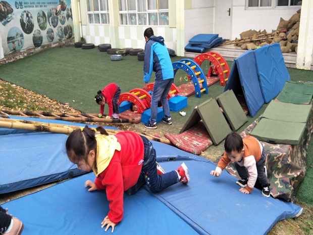 小班幼儿最喜欢爬,爬是一种手脚协调地、交替地、有节奏的运动,这种活动不仅有利幼儿身体两侧肌肉健康发展,而且还有利于促进幼儿大脑两个半球的发展。刘老师根据小班孩子的年龄特点,以 “帮熊奶奶收粮食” 为情景带领幼儿尝试多种爬的方式,通过游戏提升孩子爬的技能。孩子们在游戏中有的手脚着地、撅着小屁股爬;有的怕碰到彩虹桥上的铃铛,匍匐爬过去;有的从坡上滑下来,一次又一次爬上去……孩子们在游戏中体验到了爬的乐趣,感受到了成功的喜悦。孩子们意犹未尽,在下次游戏中还要继续探索爬的方式,让我们拭目以待吧!