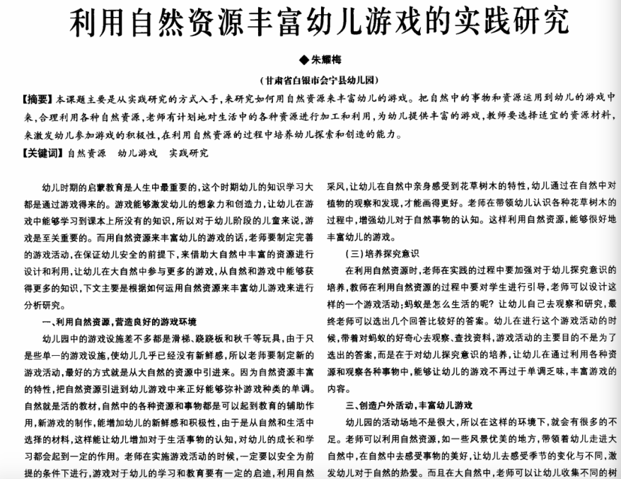 资源的开发与利用促进幼儿生态运动游戏开展的实践研究