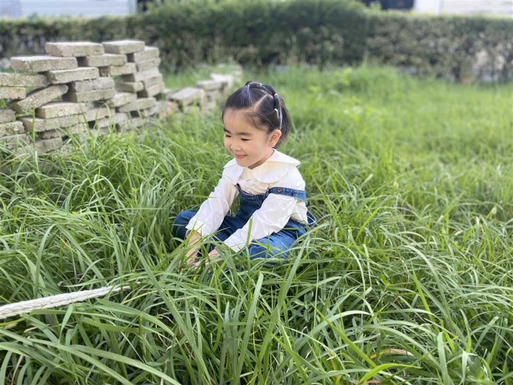 嬉乐湾是孩子们特别喜欢的游戏场所,除了那里有大型木质玩具外,还有遍地的绿草,孩子们在草地上玩各种游戏。生态运动游戏资源课题组的老师们发现了孩子们的兴趣点,挖掘“草”这个现成的、容易被忽视的资源,开展起了生态运动游戏。