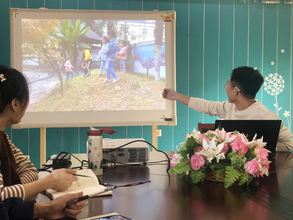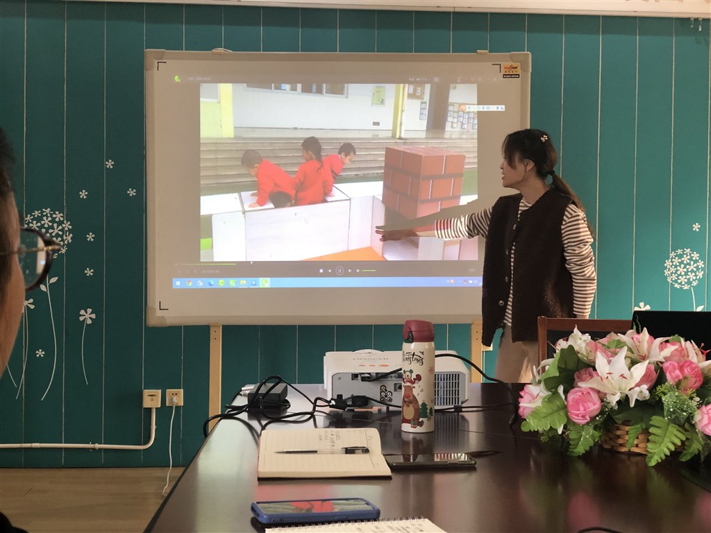 本次研讨分为三个部分,第一部分是围绕课题,聚焦环境,对本园的材料、环境分类的维度进行思考。会议的开始,林浩老师抛出这一问题,课题组成员展开热烈的讨论,提出了不同的见解。最后,大家对分类的维度进行了初步的总结,材料从废旧材料、自然材料、新材料、老物新用材料等进行整理,环境从园内自然环境、园所建筑空间两个维度进行初步分类。第二部分每位课题组成员结合个案观察记录,分享教师眼中所观察到幼儿与资源之间新发现。每位老师结合视频或者照片,分享自己的新发现,碰撞出新火花。胡一茹老师“以游戏资源从哪里来?”为观察目的,徐雅老师以“游戏资源怎么玩?”为观察目的,同样是对幼儿玩立体钻爬箱的观察,带着不同的观察目的,却有不同的新发现。张亚庆和李雯老师以“游戏资源多样玩法”为观察目的,对不同的幼儿活动进行观察,也有新收获。周一红、何锌科、王珍芳老师带着对“环境与材料的思考”,分享除了不同幼儿对于不同环境与材料组合的创新……各位老师先后分享了自己的所见所感所得。第三部分是布置下一阶段新任务:课题组成员分为两批,下周分别对园所材料与环境进行初步分类。