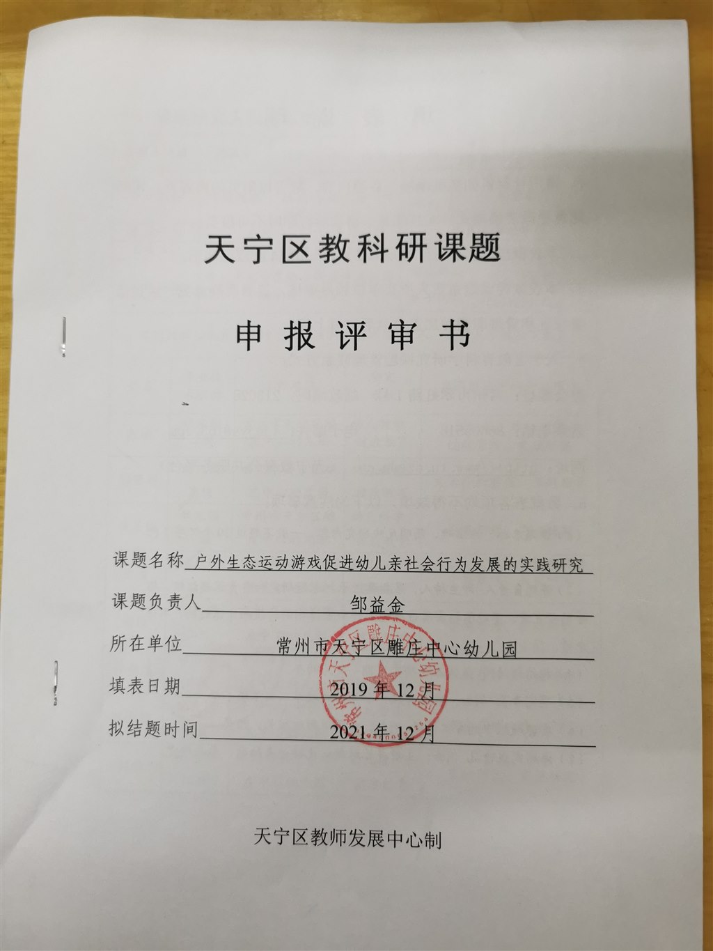 《户外生态运动游戏促进幼儿亲社会行为发展的实践研究》申报评审书