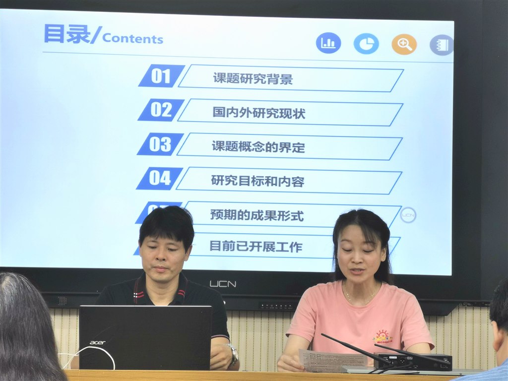 在开题论证活动中,课题主持人林浩、胡一茹作《生态运动游戏资源的开发与利用研究》开题报告,胡老师分别结合课题开展的实际情况,对课题的研究背景与价值、概念及界定、国内外研究现状、研究目标与内容、思路与方法、预期成果以及目前已开展工作等进行全面阐述,还就下一阶段寻求有效课题研究途径进行了预设。