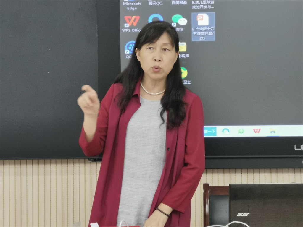 汇报结束后,课题主持人针对课题的实施开展情况与评委团专家进行探讨,教科院张丽霞研究员点评了《生态运动游戏资源的开发与利用研究》,她首先肯定了课题扎实的研究工作,接着针对课题名称的恰当性、概念界定的全面性、研究目标的合理性、研究内容适宜性、研究思路的系统性提出了建议,对课题的薄弱点进行了精准的解剖与论证。