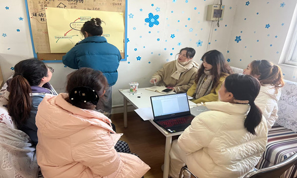 前期,教师们自学了关于“幼儿亲社会(教育学)”和“亲社会(心理学)”的文献,并通过做笔记的方式进行了自我的认知梳理。活动开始后,老师们分两组进行了分析与解读。之后进入现场教研环节,两组各选出一名教师针对亲社会行为在心理学及在教育学中的两个内容,以思维导图的方式和大家进行交流分享。老师们对“亲社会行为”的内涵、作用和实施途径有了进一步地了解。