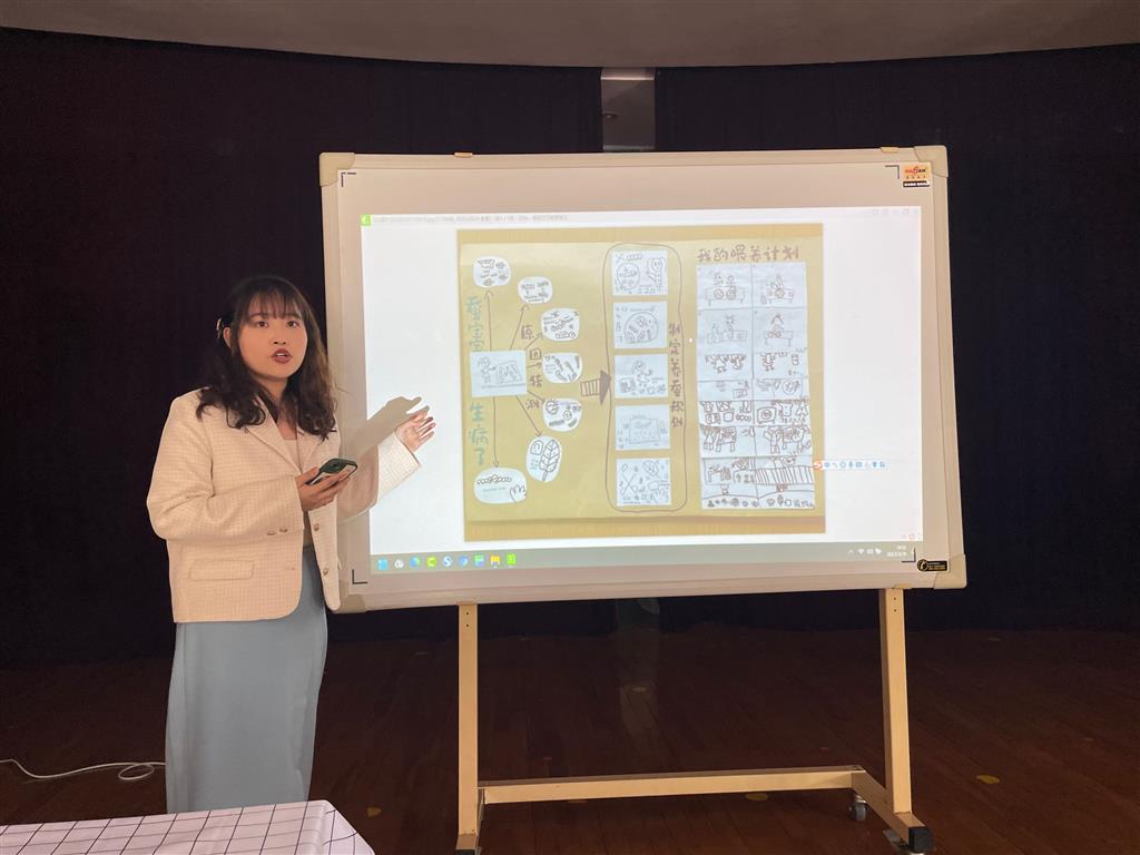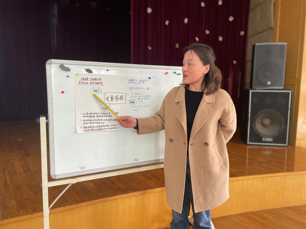 《幼儿园保育教育质量评估指南》提出,要强化“师幼互动”,关注幼儿的学习过程,学会倾听儿童,树立“儿童本位”的教育理念。本课题也一直关注在评价时儿童运动分享的重要性,而儿童海报,是幼儿运动分享的一种更高形式,将幼儿的表征进行系统的梳理,能帮助幼儿厘清自己的思维。因此,在3月31日,课题组成员进行了关于“支持儿童创意主题连环画式的儿童海报”的教研活动。