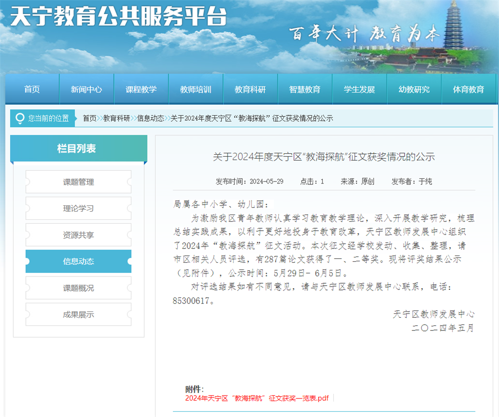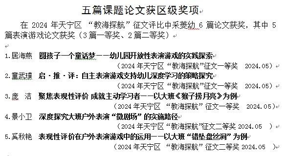 2024年5篇课题论文获天宁区教海探航一、二等奖
