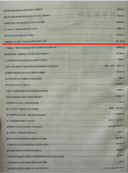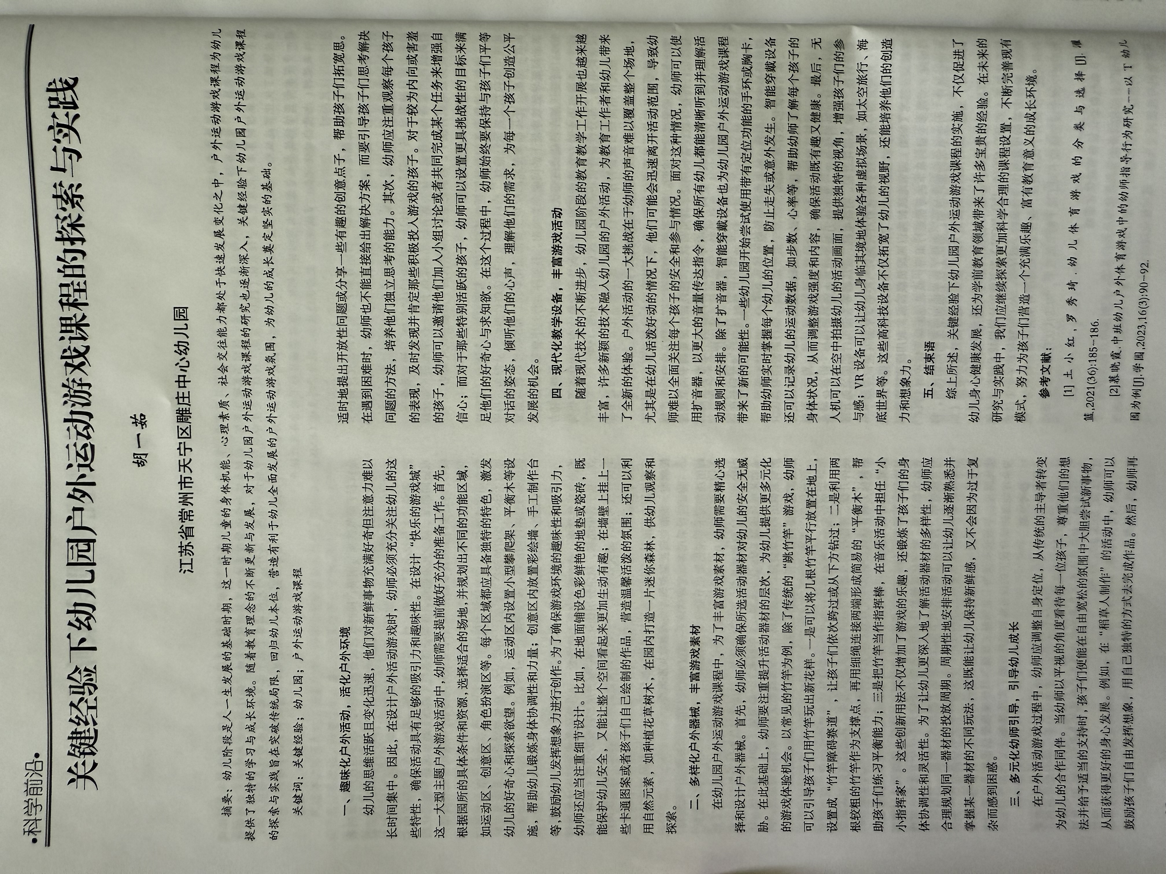 胡一茹论文《关键经验下幼儿园户外运动游戏课程的探索与实践》发表于2025年第五期《科学新生活》正文